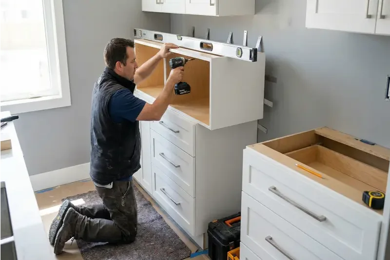 Both options are possible. If your cabinet boxes are solid and the layout still works, we can sometimes reconfigure, add new pieces, or refinish existing cabinets to save cost. If the cabinets are in bad shape or you want a different layout, we can install a completely new set.